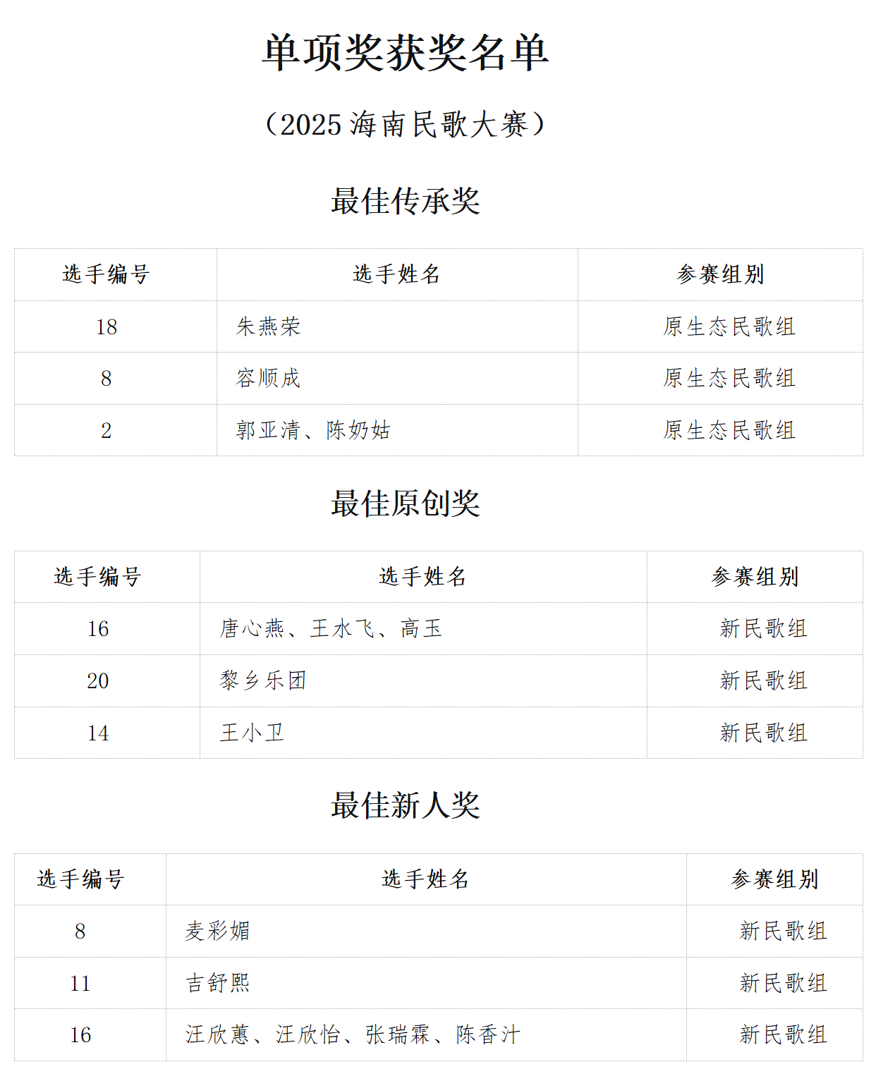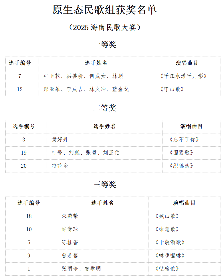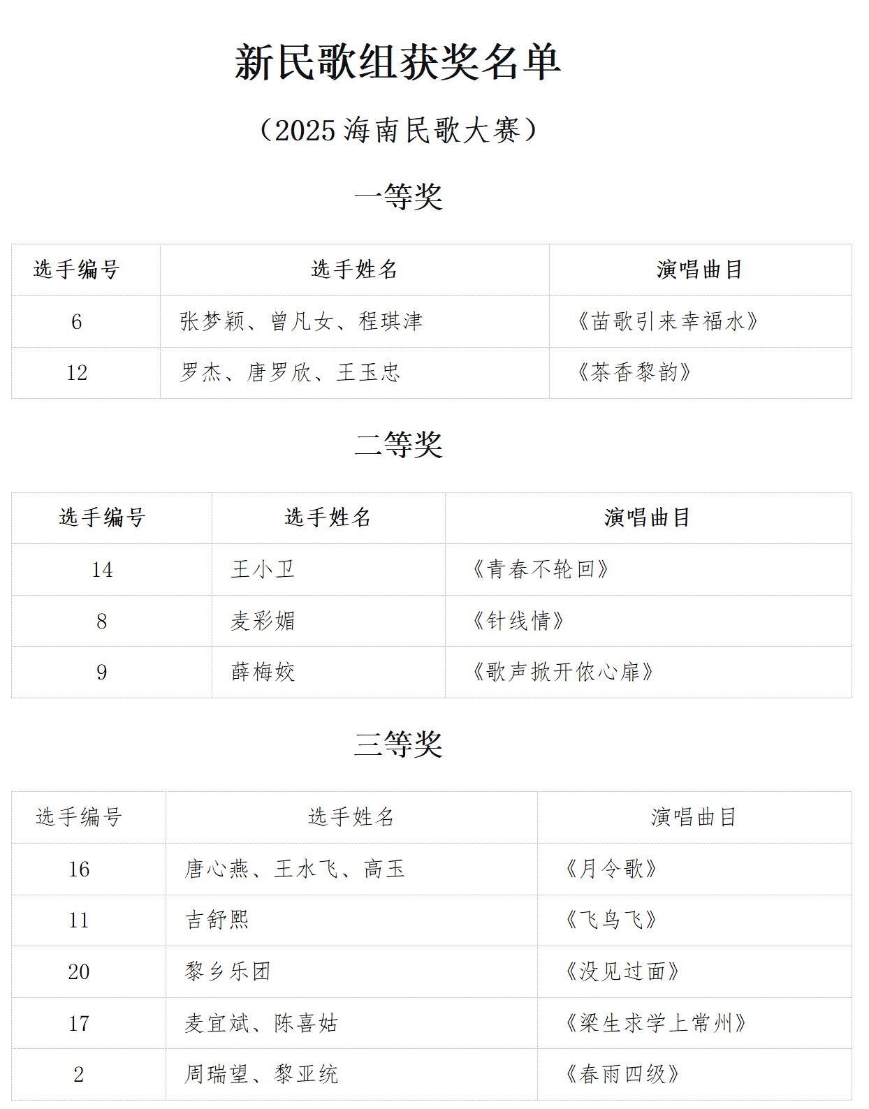 在海南省文学艺术界联合会、海南省旅游和文化广电体育厅指导下,由海南省民间文艺家协会和海南大学国际传播与艺术学院联合主办的“山海传音·唱响琼州”2025海南民歌大赛,已于2025年11月16日圆满落幕。