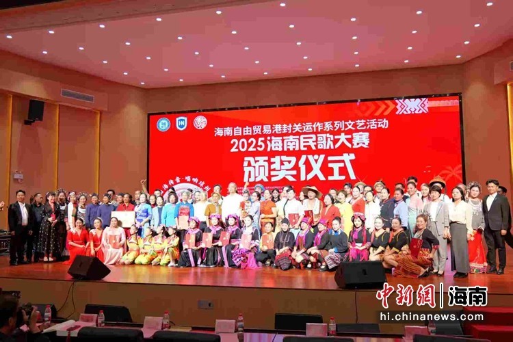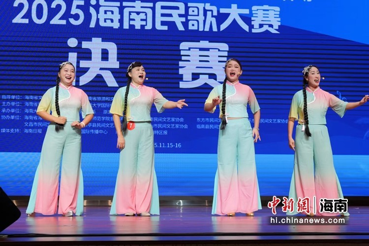 中新网海南新闻11月17日电 (王才丰)11月16日晚,历时两个多月的2025海南民歌大赛在海南大学圆满落幕。当晚,在决赛现场,四十余组选手通过独唱、对唱、合唱等形式唱响多种海南民歌,为观众呈现了一场精彩的民歌盛宴。